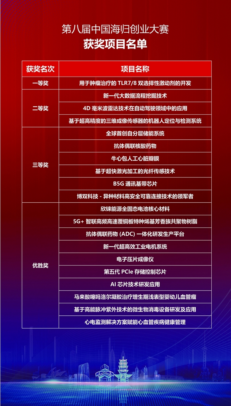 2022(第八屆)中國海歸創(chuàng)業(yè)大賽貫徹落實(shí)習(xí)近平總書記在中央人才工作會議上提出的深入實(shí)施新時(shí)代人才強(qiáng)國戰(zhàn)略、加快建設(shè)世界重要人才中心和創(chuàng)新高地的要求,以及給南京大學(xué)留學(xué)歸國青年學(xué)者的回信精神,圍繞高水平科技自立自強(qiáng)和經(jīng)濟(jì)社會高質(zhì)量發(fā)展的需要,進(jìn)一步加強(qiáng)平臺開放,采用部委指導(dǎo)、協(xié)會統(tǒng)籌、地方承接、合作辦賽的新型機(jī)制,由留創(chuàng)園工委會聯(lián)合江蘇省高新技術(shù)創(chuàng)業(yè)服務(wù)中心、蘇州國家高新區(qū)管委會等7家單位共同主辦,另有20多家各地單位協(xié)辦,發(fā)揮地方資源稟賦優(yōu)勢,在空間、政策、資本、產(chǎn)業(yè)對接等方面進(jìn)一步提升服務(wù)能級,支持更多優(yōu)質(zhì)海外項(xiàng)目和海歸人才落地實(shí)施成果轉(zhuǎn)化和科技創(chuàng)業(yè)。本屆大賽自7月啟動以來,經(jīng)項(xiàng)目報(bào)名和初審、公示,共有119個(gè)海歸項(xiàng)目團(tuán)隊(duì)入圍復(fù)賽。復(fù)賽于2022年12月29日—30日采用線上形式舉行,將通過路演、評審產(chǎn)生20個(gè)項(xiàng)目晉級決賽。2023年1月13日,由中國技術(shù)創(chuàng)業(yè)協(xié)會留學(xué)人員創(chuàng)業(yè)園工作委員會聯(lián)合江蘇省高新技術(shù)創(chuàng)業(yè)服務(wù)中心、蘇州國家高新區(qū)管委會等7家單位共同主辦的第八屆中國海歸創(chuàng)業(yè)大賽決賽在蘇州高新區(qū)落下帷幕。