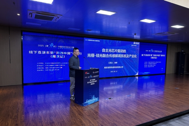 6個由南大科技園推薦的海歸創(chuàng)業(yè)項目進行了路演,介紹了各自的技術(shù)優(yōu)勢、市場前景、商業(yè)模式以及團隊情況,涵蓋新一代信息技術(shù)、生物醫(yī)藥與大健康、綠色環(huán)保、智能制造等新興產(chǎn)業(yè)領(lǐng)域。導(dǎo)師評委們圍繞技術(shù)壁壘、細分市場、商業(yè)模式等多個維度進行了提問和點評。經(jīng)導(dǎo)師團現(xiàn)場評議,南京準(zhǔn)智傳感科技有限公司的“自主光芯片驅(qū)動的光柵——硅光融合傳感解調(diào)系統(tǒng)及產(chǎn)業(yè)化”、南京創(chuàng)藍科技有限公司的“城市碳排放三維立體觀測及碳中和評估智慧管理平臺”、南京生科智藥科技有限公司的“生物智能材料產(chǎn)業(yè)化開發(fā)”3個項目成功入圍本屆中國海歸創(chuàng)業(yè)大賽復(fù)賽。