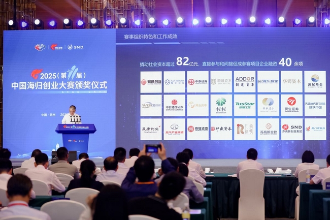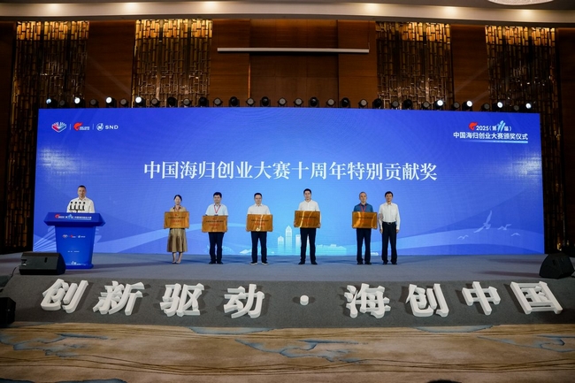 在頒獎儀式中,科技部、工信部、致公黨中央等大賽指導(dǎo)單位以及江蘇省、蘇州市有關(guān)部門領(lǐng)導(dǎo)為獲獎項(xiàng)目頒發(fā)了獎杯、獎金和證書?,F(xiàn)場還作了中國海歸創(chuàng)業(yè)大賽10周年總結(jié),全面回顧了大賽舉辦10屆以來所重點(diǎn)開展的工作和取得的成果;發(fā)布了中國海歸創(chuàng)業(yè)大賽10周年TOP100優(yōu)秀企業(yè)榜單,根據(jù)歷屆參賽企業(yè)近年來在企業(yè)成長性、科技創(chuàng)新力、行業(yè)影響力、地區(qū)貢獻(xiàn)度等方面進(jìn)行綜合評定,有海柔創(chuàng)新、青禾晶元、杉數(shù)科技、斯乾智駕、漢陽科技、識光芯科、景略半導(dǎo)體、圣德醫(yī)療、英磁新能源等100家優(yōu)秀企業(yè)入選。此外,活動還為在大賽組織服務(wù)中作出重要貢獻(xiàn)、給予推動支持的一批單位頒發(fā)了中國海歸創(chuàng)業(yè)大賽10周年特別貢獻(xiàn)獎和組織貢獻(xiàn)獎,并舉行了中國海歸創(chuàng)業(yè)大賽成果轉(zhuǎn)化基地啟動儀式及項(xiàng)目簽約儀式。